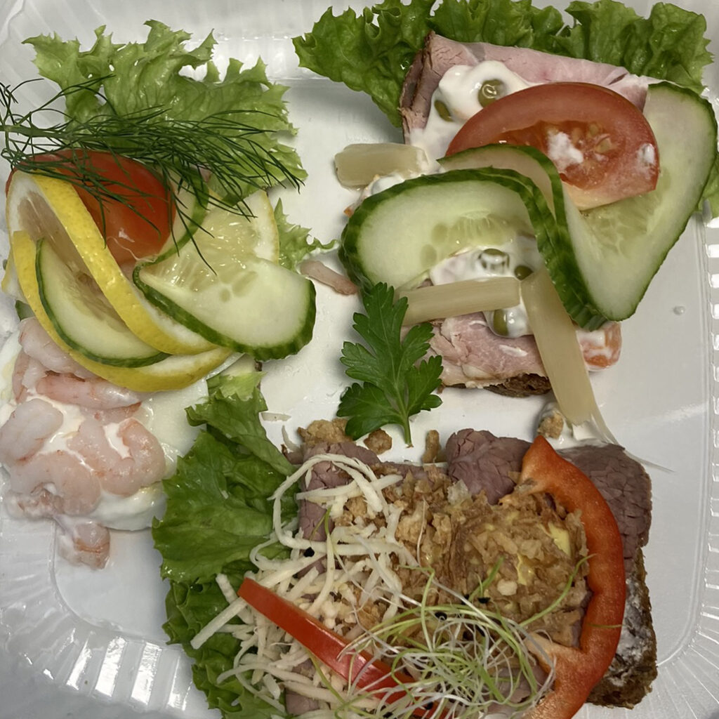 I højsæsonen og skoleferierne er der mulighed for at købe frokost – dog kun så længe lager haves. Vi får dagligt leveret et begrænset antal sandwichs, håndmadder o.a. fra en lokal restaurant.